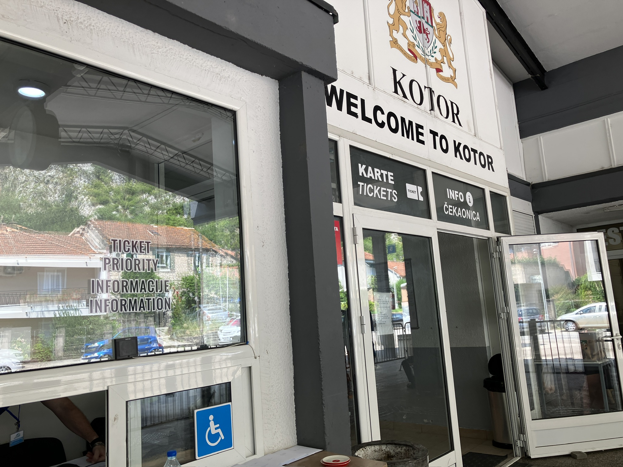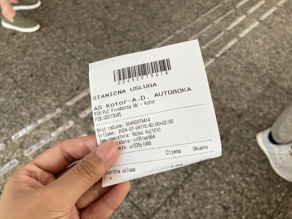 ①チケットをオンライン購入の場合、コトルバスターミナルでターミナル使用料を払う