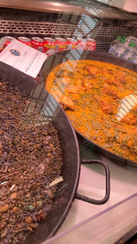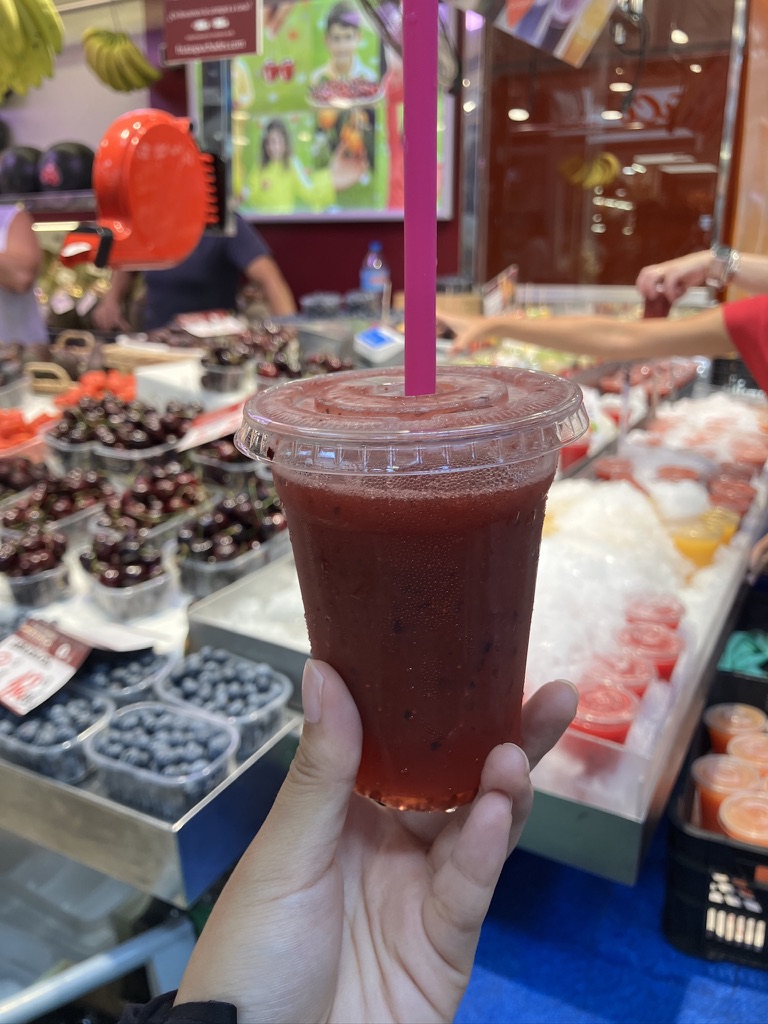 市場内には軽食を楽しめるスタンドもあり、その場でジュースやパエリアを味わうこともできます。