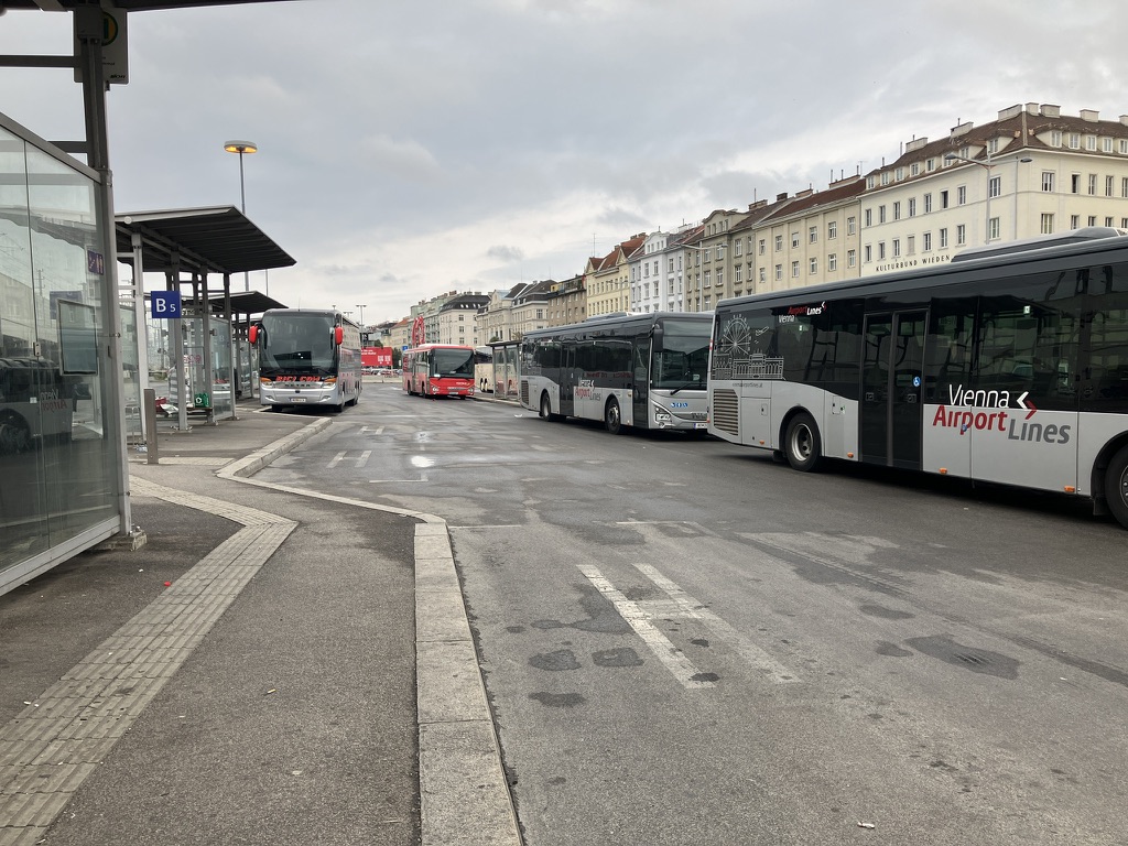 バスターミナルから市内中心へはトラムや地下鉄で移動できます。